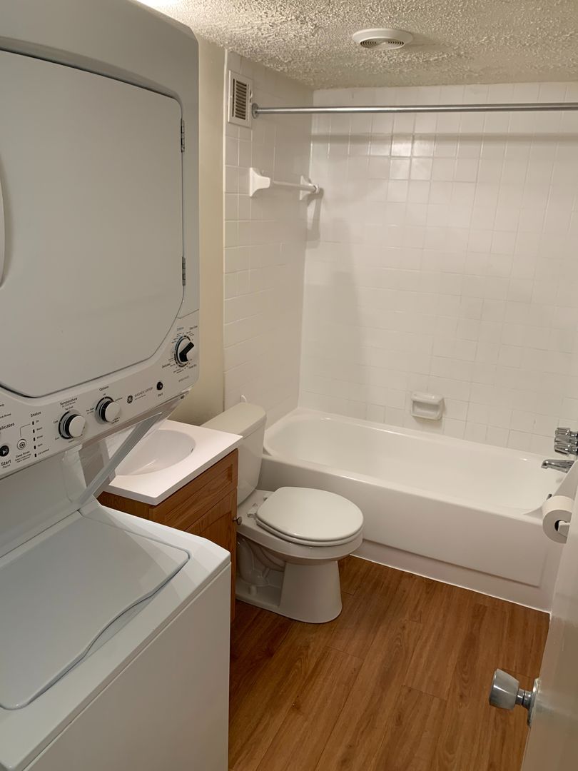 Discover the 1bd 1bath at 1bd 1bath in Rockville, MD — a ground-floor apartment featuring stainless steel appliances, a built-in microwave, and new plush carpet. The unit includes an in-unit washer and dryer, a walk-out patio, and barn-style doors at the dining area. Partially renovated with a partial pool view, this residence combines updated finishes and convenient layout for comfortable living.