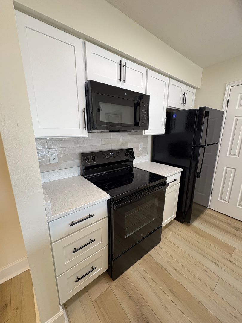 Second Floor Newly Renovated Apartment with Quartz Countertops, White Cabinets, Fireplace and Large Balcony